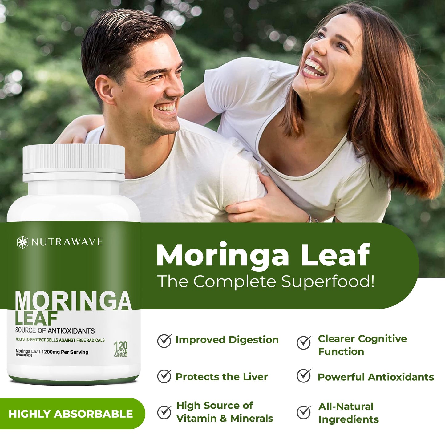 Organic Moringa Leaf Capsules - 1200mg