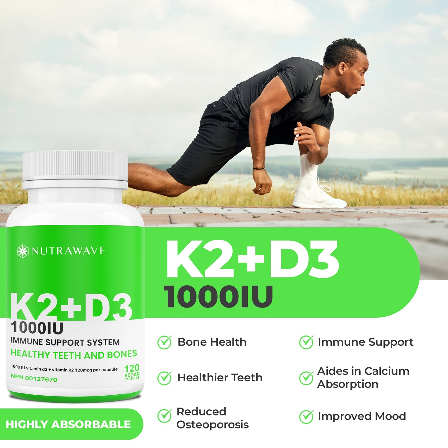 Vitamin D3 + K2 Capsules - 1000IU
